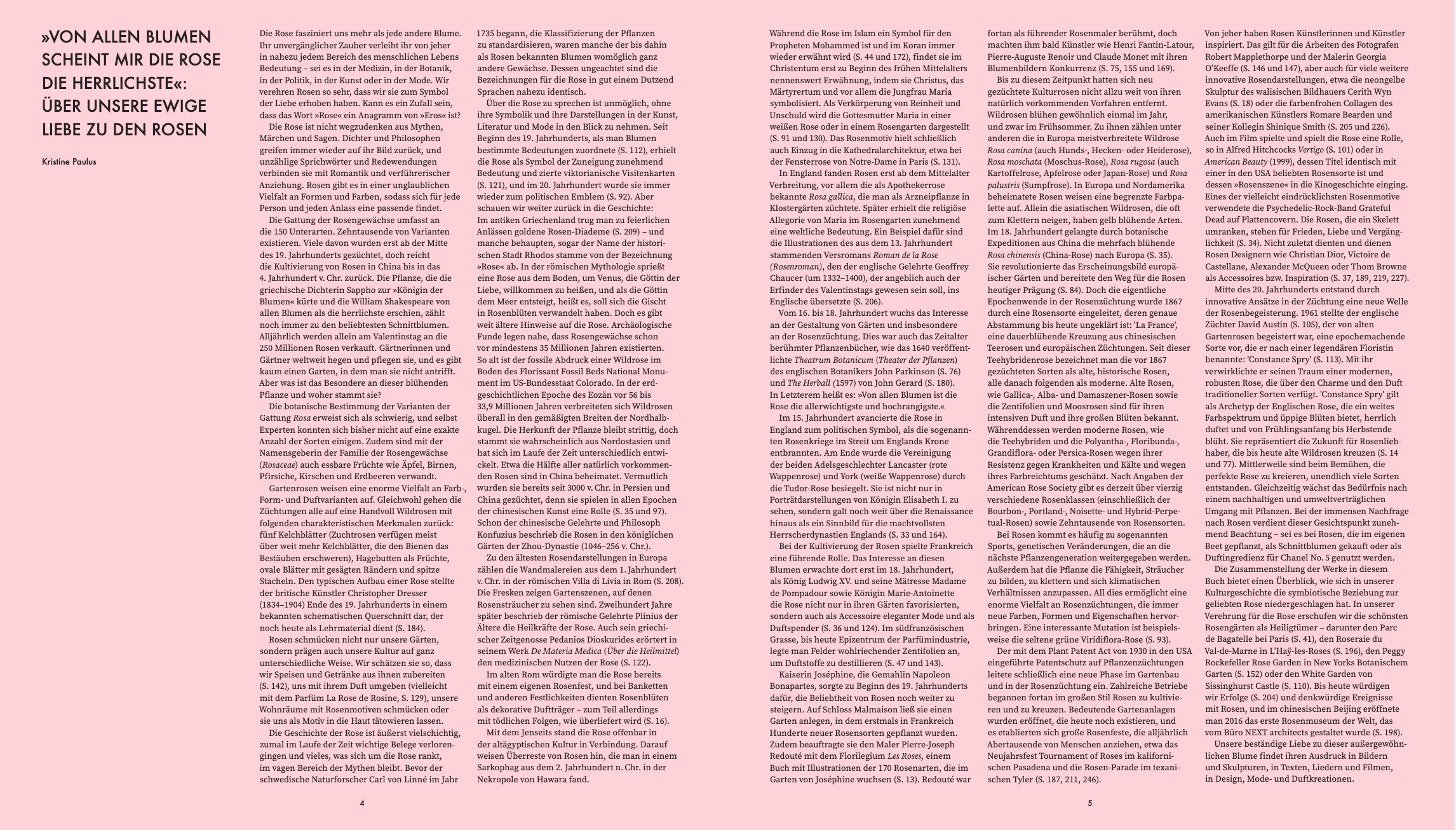 Vom eleganten Dior-Kleid und einer rosenverzierten Barbie bis zu antiken Mosaiken und viktorianischen Valentinskarten – das Buch feiert die unverwechselbare Schönheit und Romantik der Rose in all ihren Facetten.